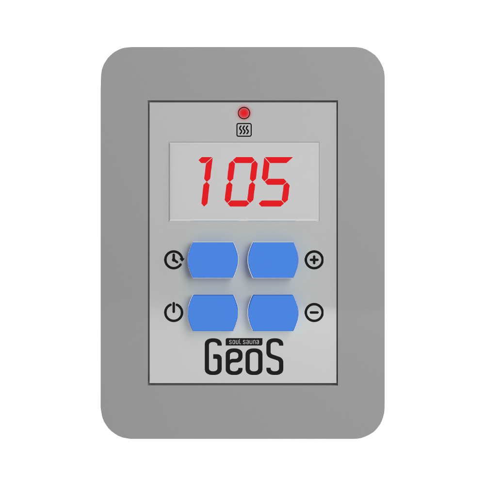 Для удобства использования электрокаменок «GeoS» рекомендуем приобрести пульт управления, подходящий по мощности. С его помощью можно программировать время включения и продолжительность работы электрокаменки, устанавливать комфортную для банщика температуру в парилке и параметры работы в режиме онлайн.