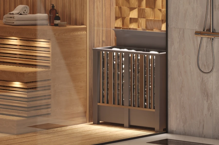 В моделях CORNER декоративные панели находятся с двух сторон, а две другие закрыты глухими конвекторами. Именно поэтому они отлично располагаются в углу парилки..