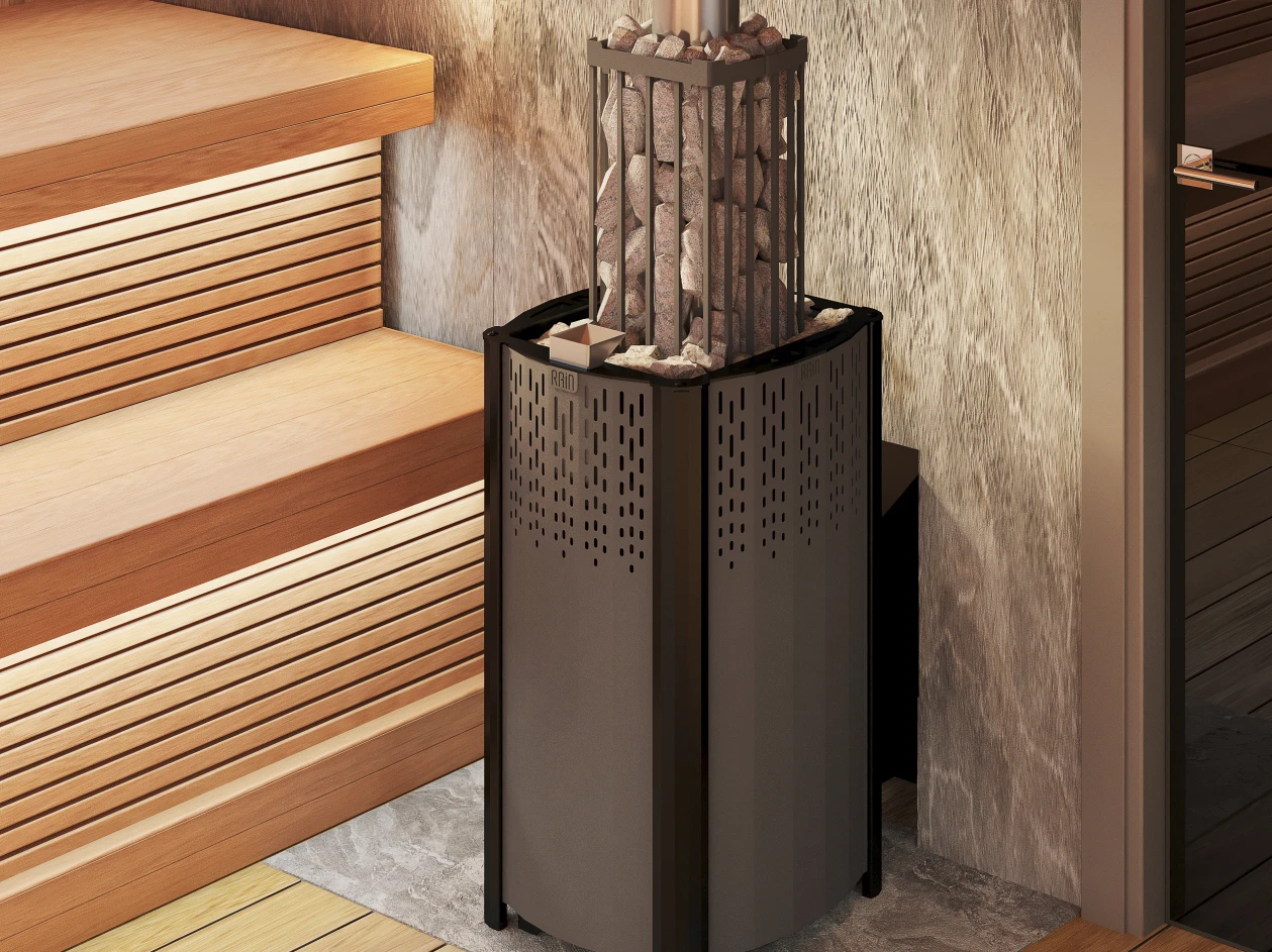 Печи «DS Rain» обладают кожухом-конвектором, который экранирует жёсткое инфракрасное излучение, исходящее от раскалённой топки, и одновременно создаёт мощные конвекционные потоки, динамично нагревающие воздух в парной. Эти печи будут предпочтительнее для любителей более жаркого и сухого микроклимата финской сауны.